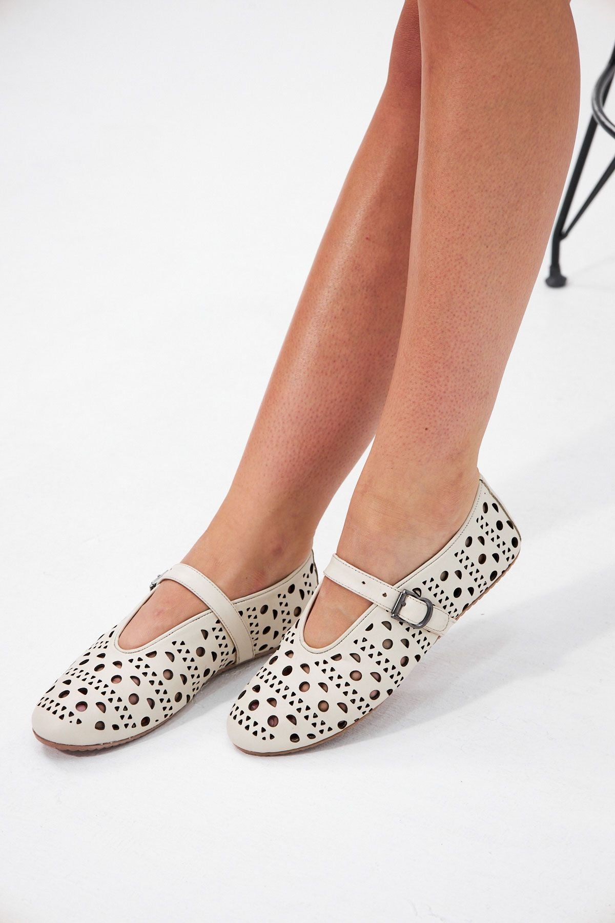بيجيا جونا حذاء باليه ماري جين مسطح من الجلد الطبيعي مع فتحات