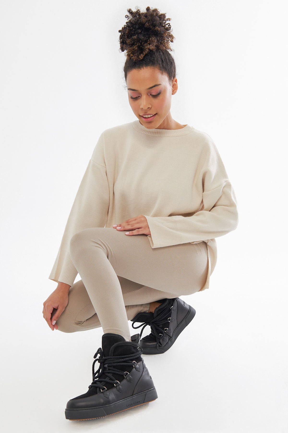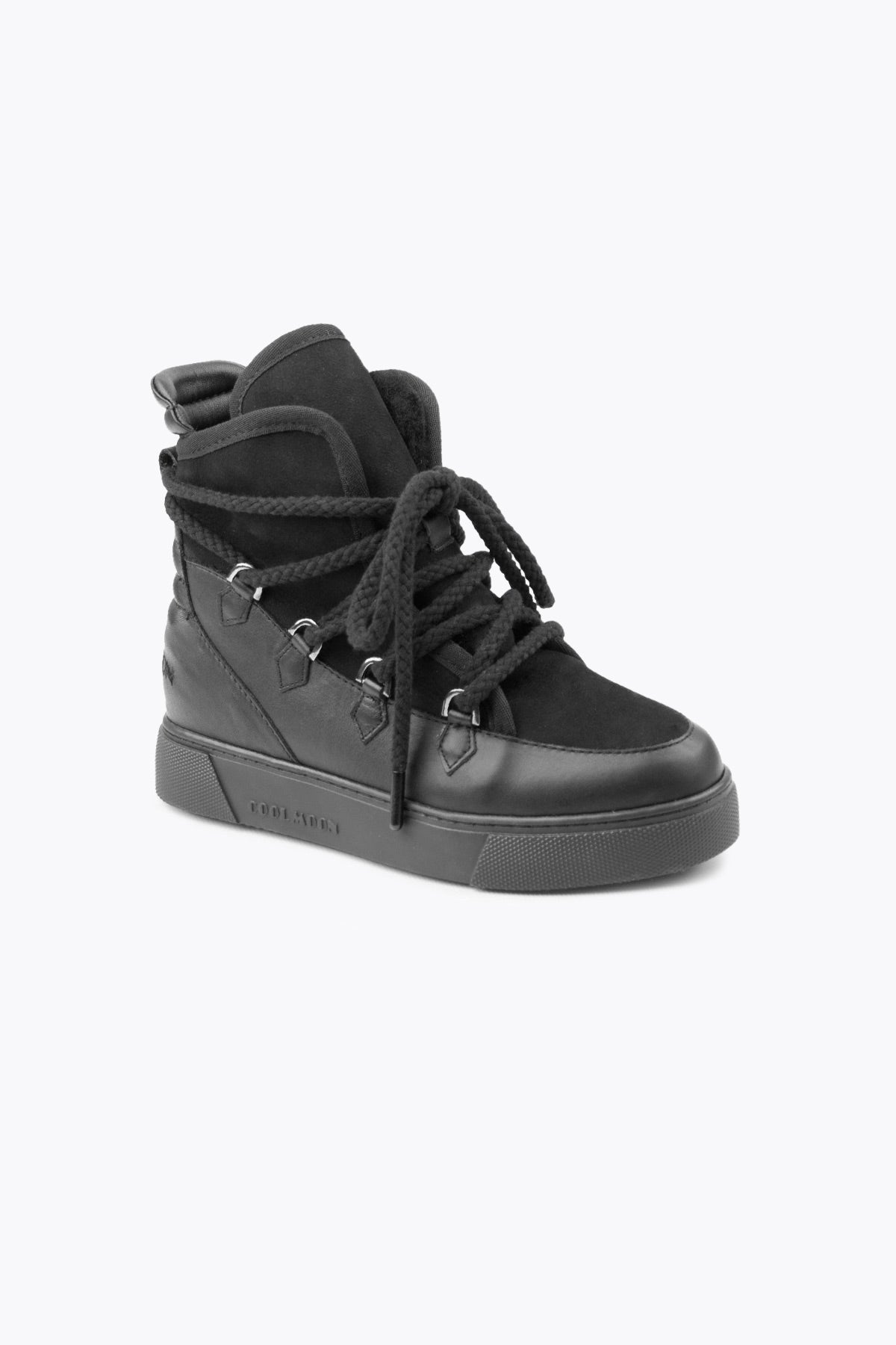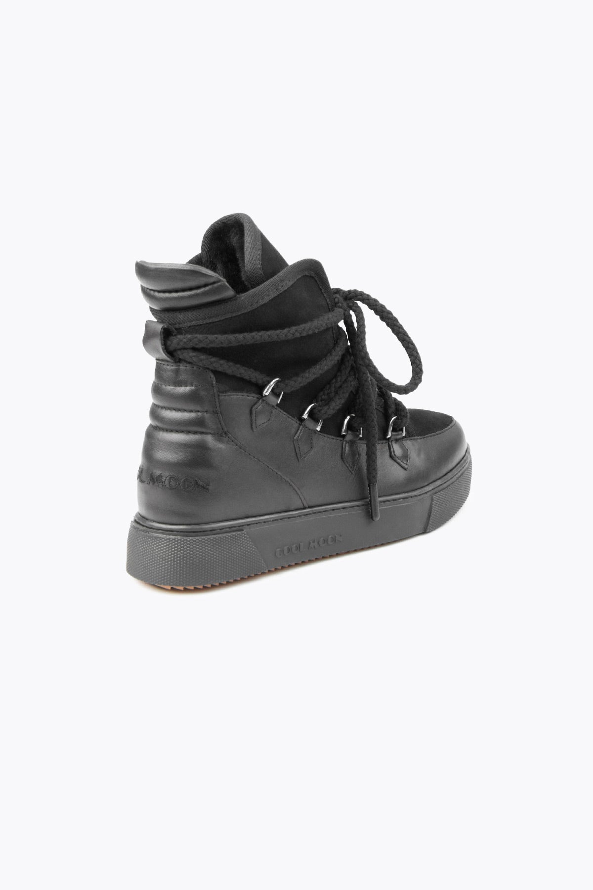 Oplev fusionen af sporty og chic design med vores Cool Moon Luda Shearling Women's Sneaker Boots. Fremstillet af luksuriøst fåreskind for maksimal varme og komfort. Den holdbare gummiydersål giver stabilitet, mens fåreskindsfodringen tilbyder overlegen isolering. Forhøj din vinterstil med uovertruffen komfort.