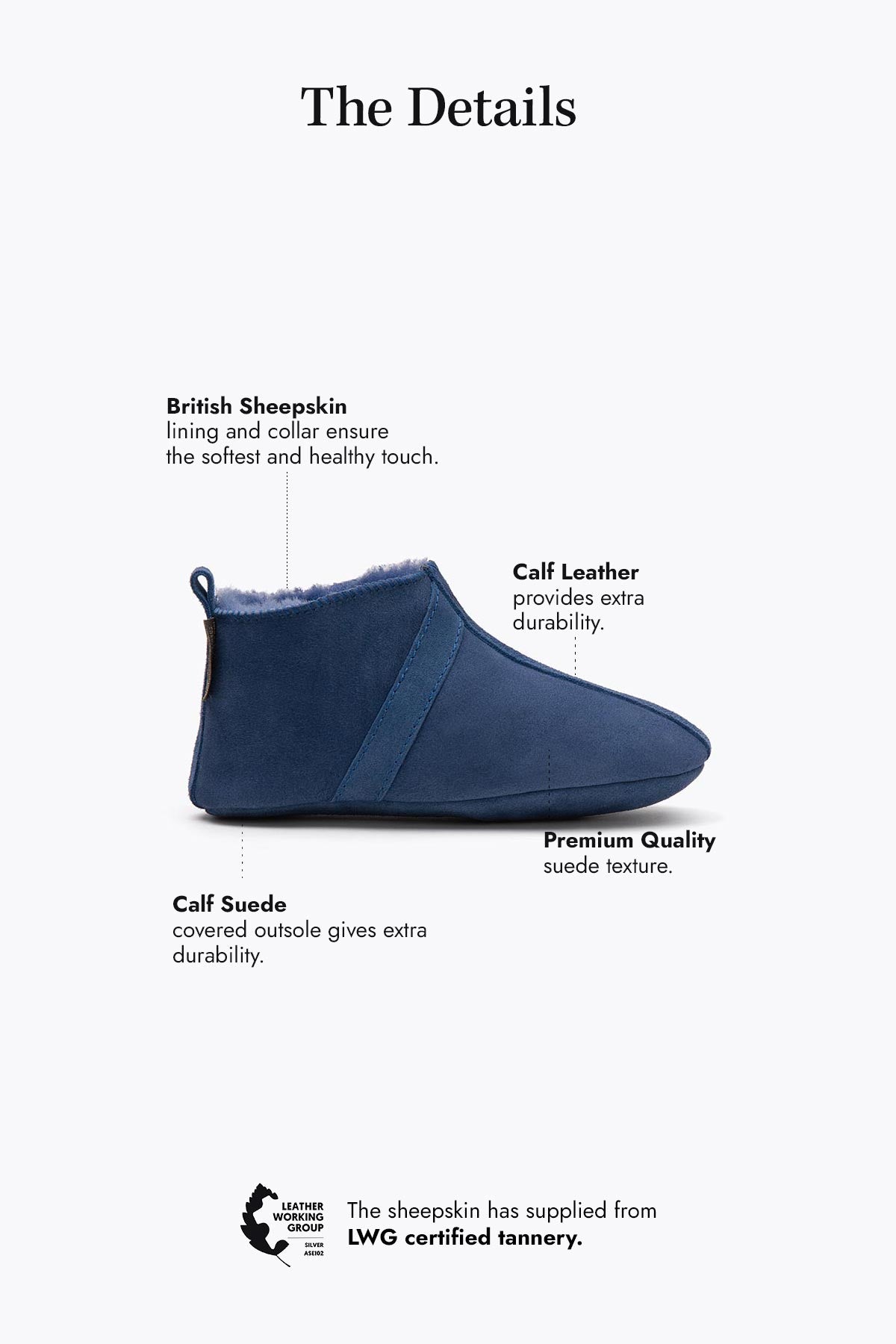 Die Pegia Homer Kinderhausschuhe verfügen über ein Obermaterial aus 100 % Schafsleder mit luxuriösem Wildleder. Leicht und sehr flexibel, bieten sie Komfort und Isolierung, während die natürliche Wolle Feuchtigkeit abweist, um die Füße trocken und warm zu halten.