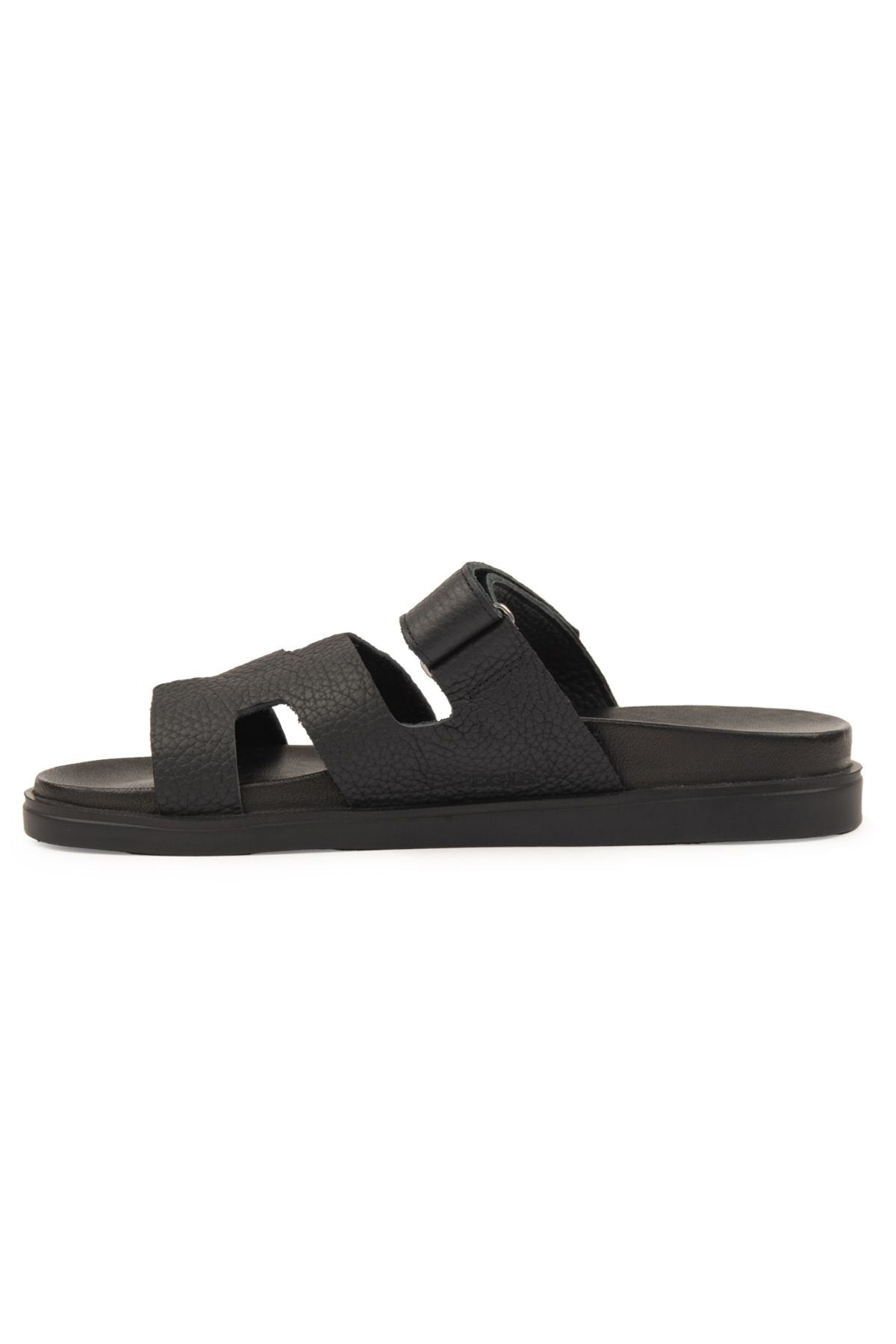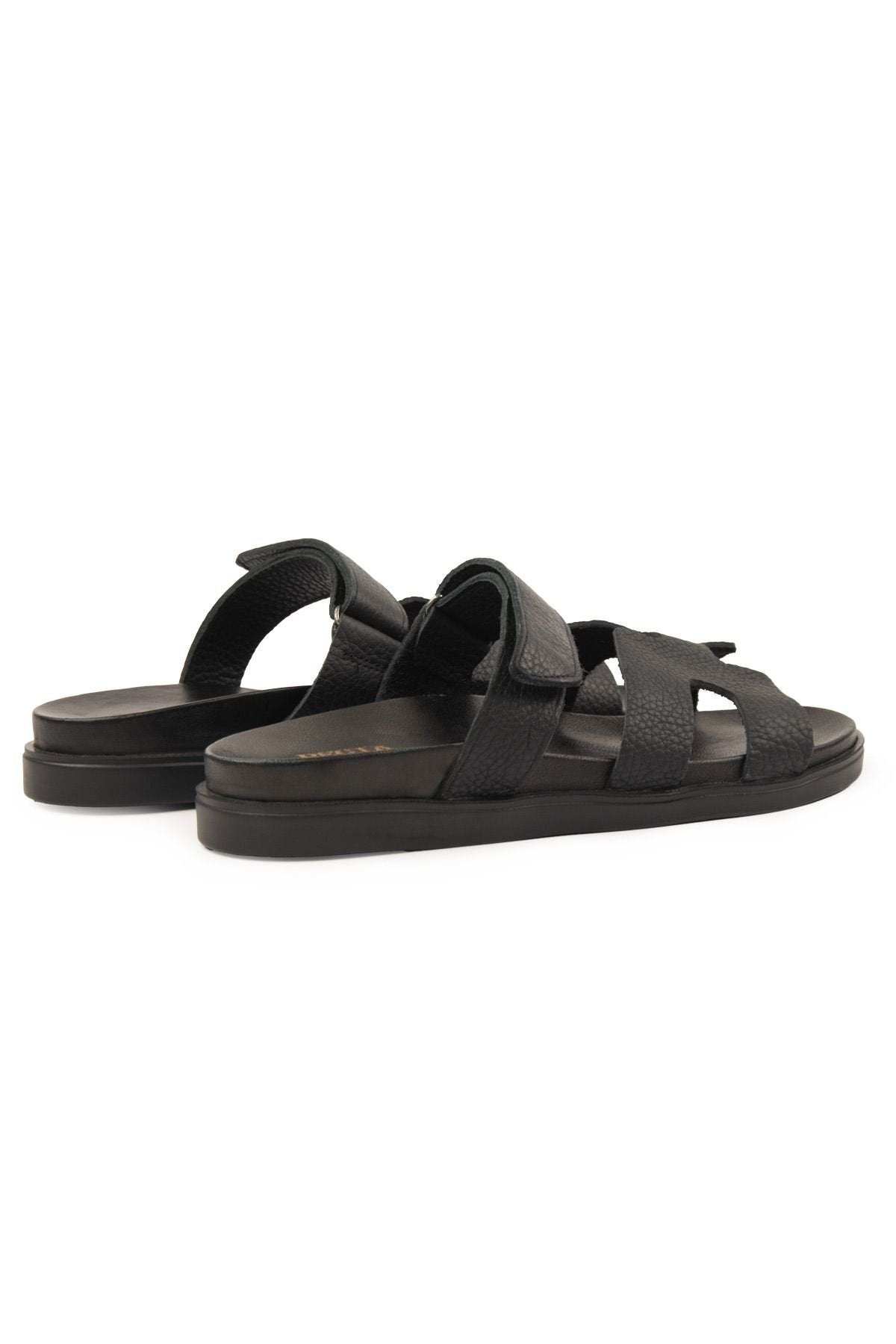 Rohkea ja monipuolinen Pegia Hvar mustat sandaalit tuovat modernin minimalismin ja arjen mukavuuden yhteen. Teksturoitu floater-nahka lisää maskuliinista särmää kesävaatekaappiisi.