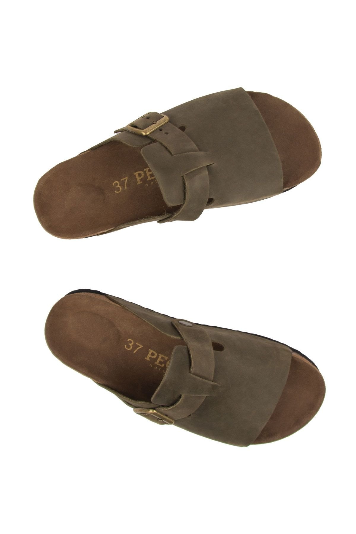 Pegia Susa yhdistää aidon nubukkinahan eleganssin mukavuuteen tähtääviin yksityiskohtiin. Leveä nubukkinen remmi, viimeistelty säädettävällä soljella, lisää modernin kosketuksen samalla kun mahdollistaa yksilöllisen istuvuuden. Vuoden 2025 mallistossa kantapää on päivitetty ylimääräisellä pehmustuksella, joka tarjoaa lisää pehmeyttä ja koko päivän tukea. Ergonominen polyuretaaninen sisäpohja mukautuu luonnollisesti jalkaan, kun taas kevyt ja joustava EVA-ulkopohja tarjoaa vakautta ja mukavuutta eri pinnoilla. Täydellinen sekä sisä- että ulkokäyttöön, Pegia Susa on taitavien käsityöläisten valmistama Turkissa, mikä takaa aidon laadun ja ajattoman muotoilun.