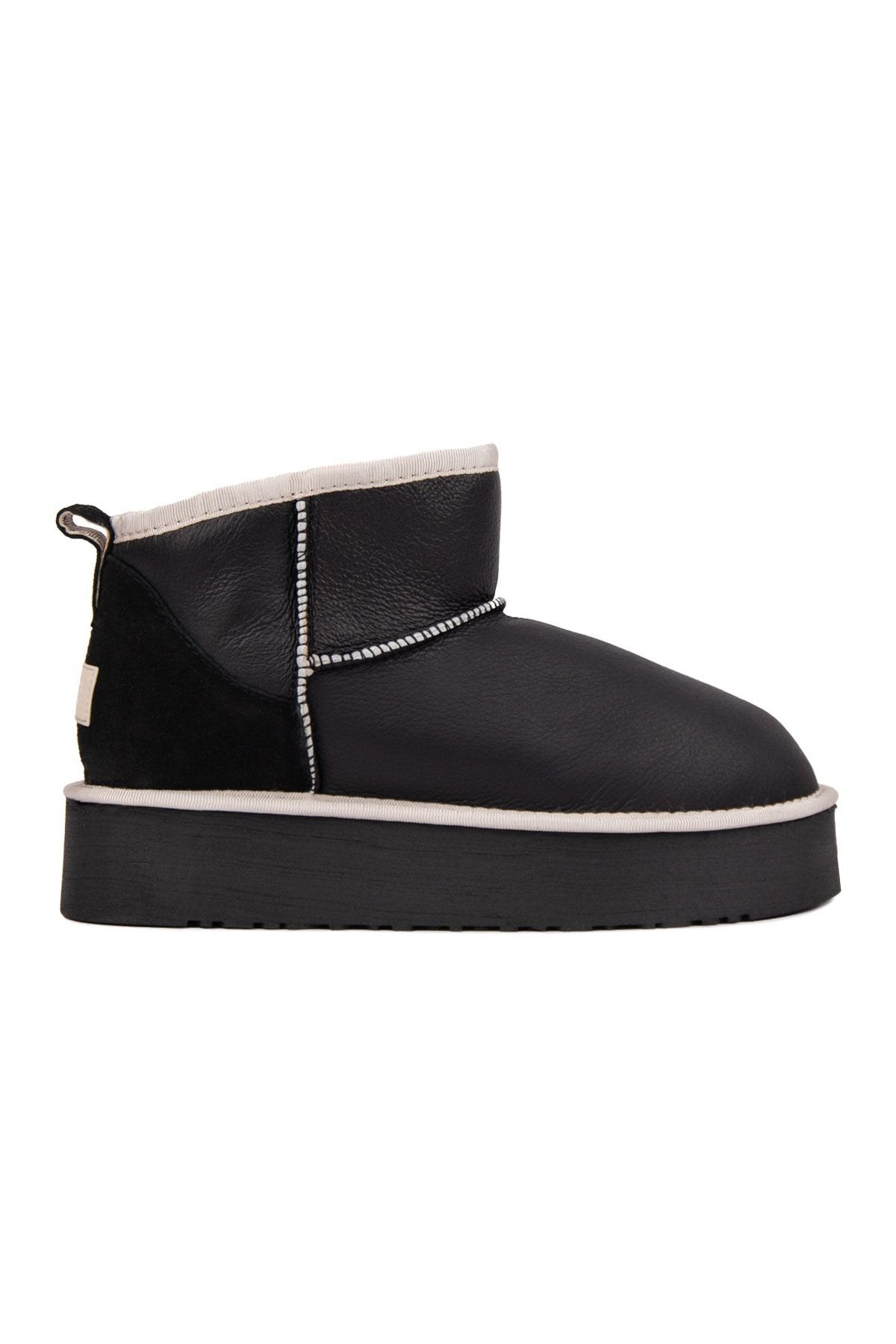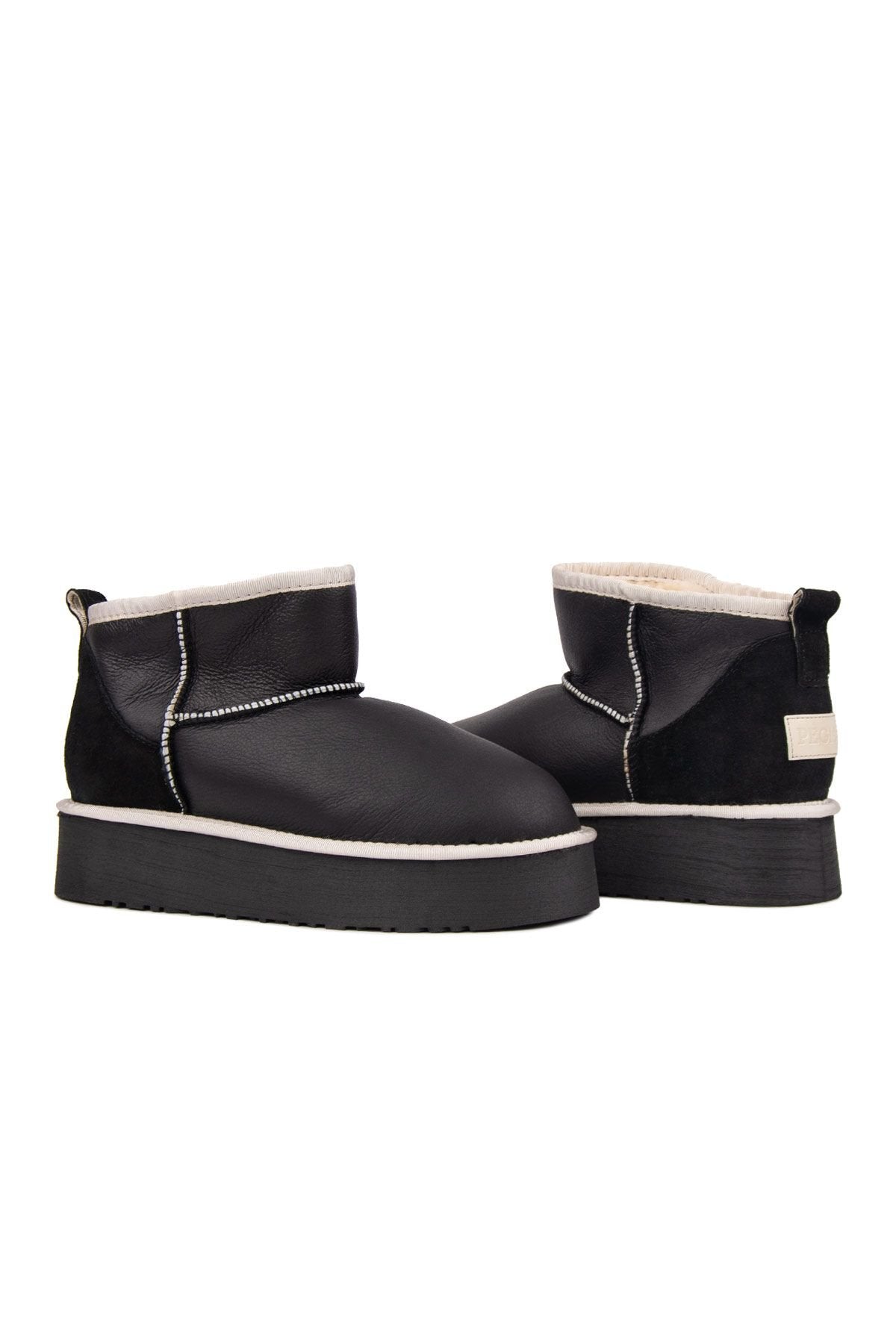 पेगिया टिऑन महिलाओं के असली चमड़े के शीयरलिंग मोटे प्लेटफॉर्म बूट्स