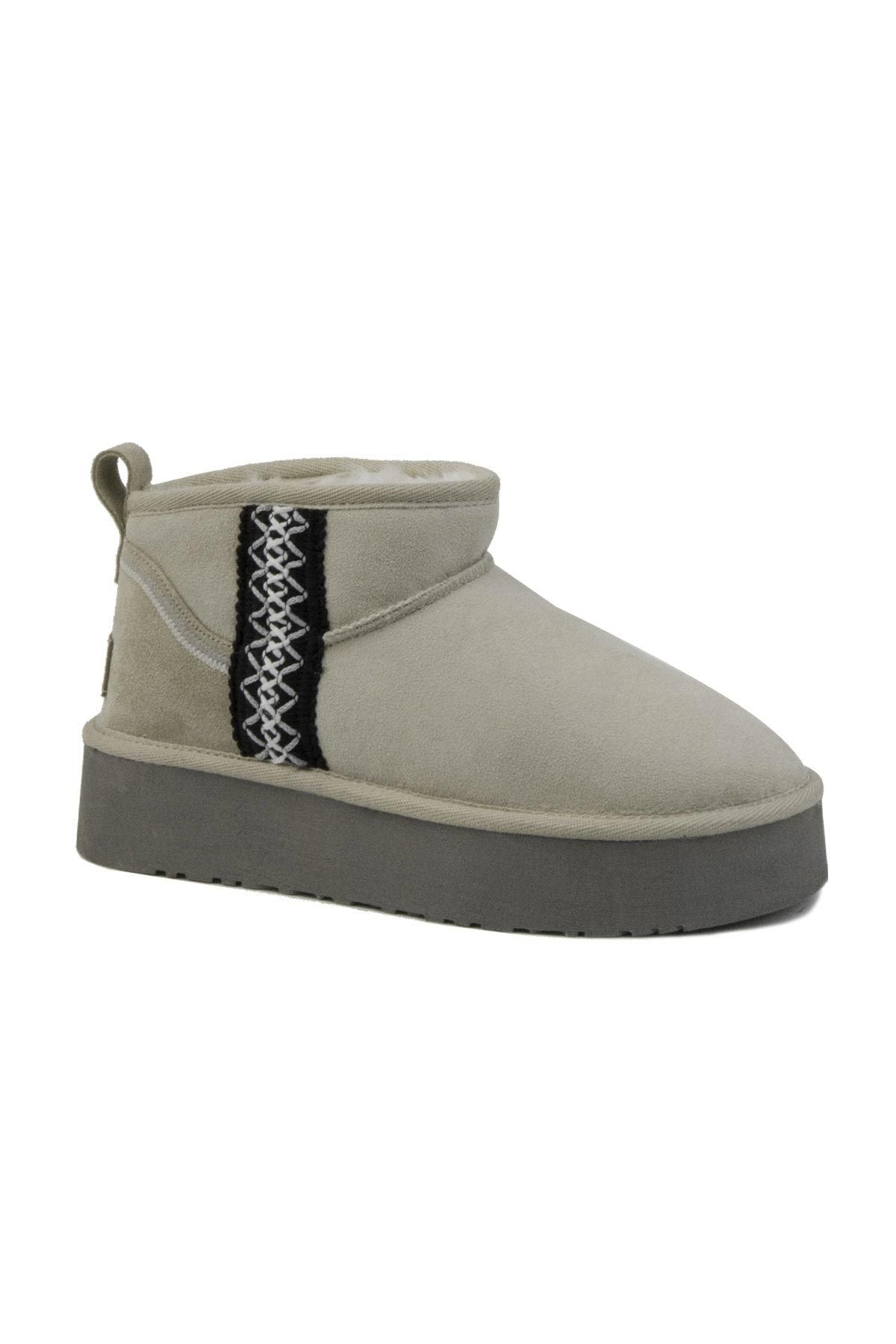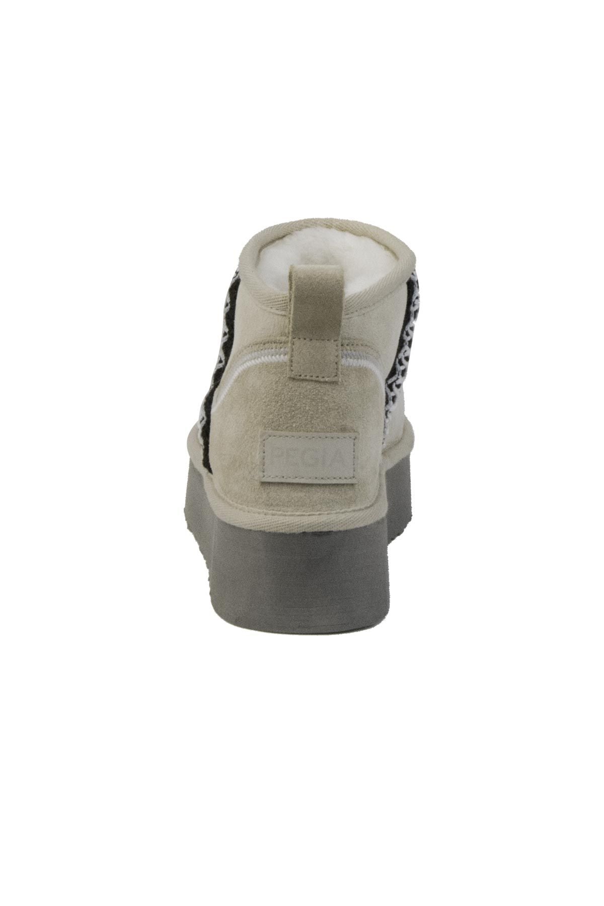Pegia Bude 米色短靴适合喜欢简约冬季风格且保暖的女性。这款鞋采用真麂皮制成,内衬全是真正的羊皮毛,因此既温暖舒适,又保持干净简约的外观。